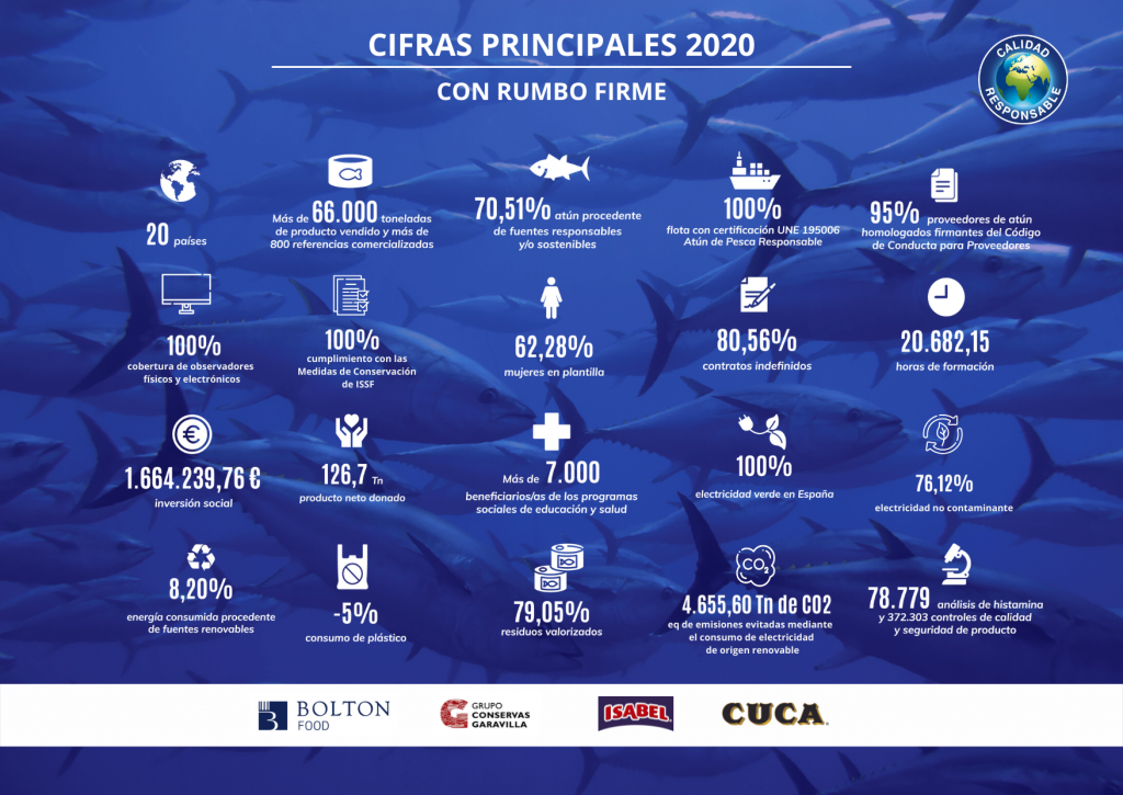 ISABEL es la primera marca en comercializar el 100% de las latas de atún que nuestras y nuestros consumidores encuentran en el supermercado, bajo la certificación AENOR Atún de Pesca Responsable, sello que garantiza las mejores condiciones sociales y laborales de la flota, bajo los más estrictos estándares, y unas prácticas ambientales responsables con los océanos y sus recursos. Marca un hito contra la pesca ilegal porque garantiza el control de la actividad pesquera y la seguridad de nuestras personas en el mar. ISABEL es responsable desde el mar hasta tu mesa.